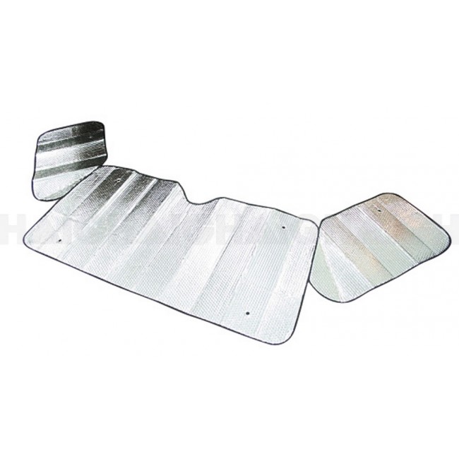 These thick, air bubble insulated sunshades offer maximum protection from exterior heat and UV rays. With additional side panels to cover the front driver & passenger windows, this popular style of sun shade gives complete protection to a vehicle’s front interior area. Easy to use, just unfold and position across the windshield surface, then fold the sun visors down to hold the shield in position.